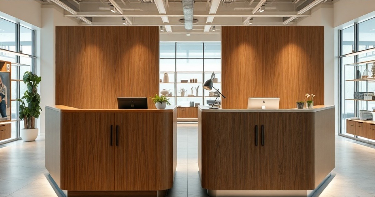 O acrílico, por outro lado, é excelente para criar balcões com visual mais leve, com partes translúcidas, nichos expositores integrados e superfícies que destacam produtos específicos. É bastante valorizado em segmentos que pedem um toque de modernidade, como tecnologia, cosméticos, óticas, telefonia e pontos de atendimento enxutos.